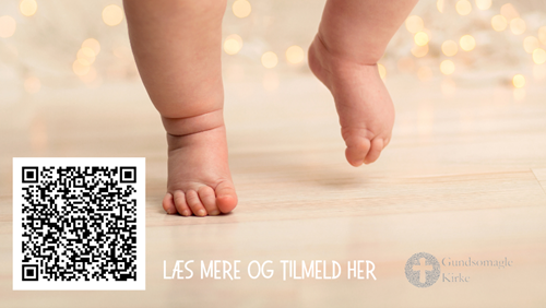 Tilmelding via kirkens hjemmeside eller QR-koden.